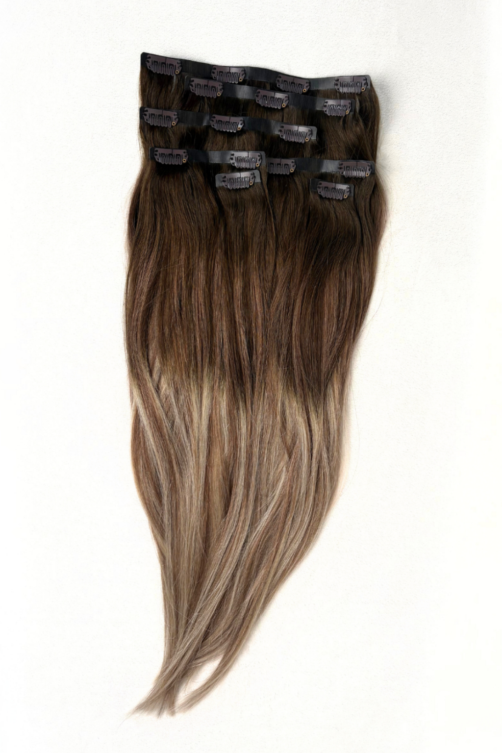 Clip-In Extensions Medium Brown Farbverlauf zu Beige Blonde (#3/8/613)
